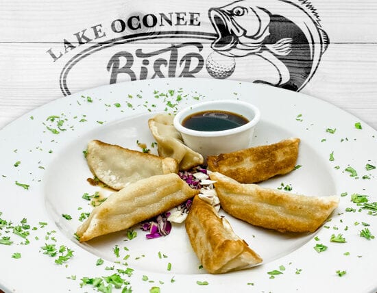 Two soft tacos topped with cheese, shredded lettuce, Pico de Gallo & chipotle ranch dressing, served with Cole slaw and choice of one side item.