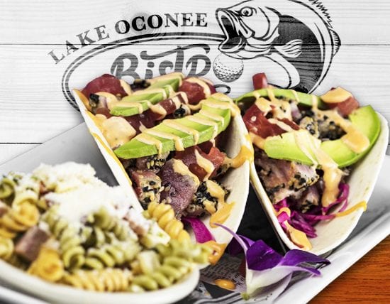 Two soft tacos topped with cheese, shredded lettuce, Pico de Gallo & chipotle ranch dressing, served with Cole slaw and choice of one side item.